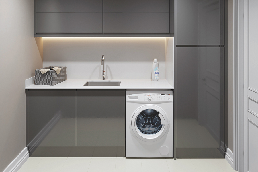 A busy utility room puts up with high humidity levels and being splashed with water. Mirostone® can deal with all this and more, because of its durable, completely waterproof and easy to clean qualities.